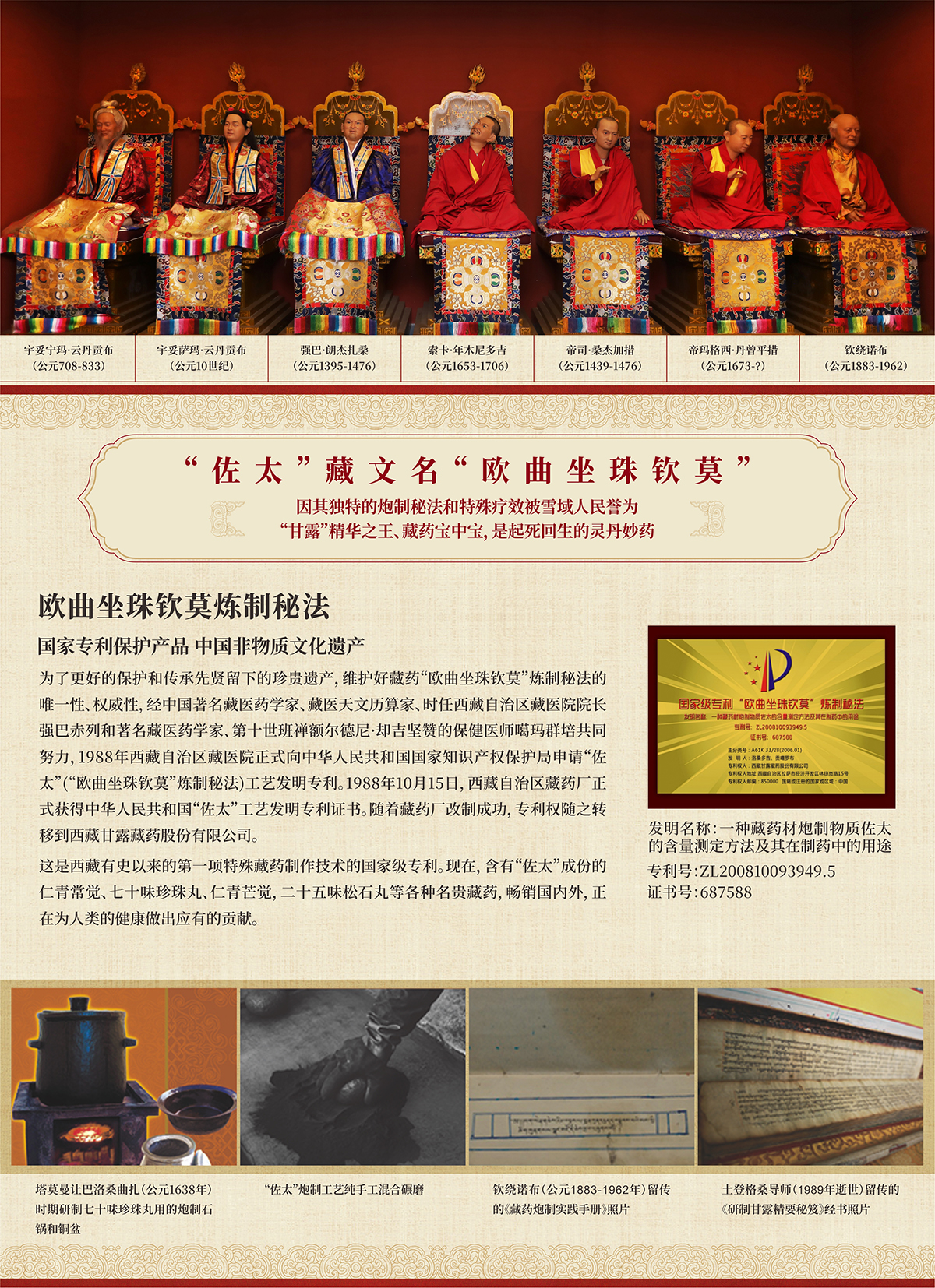 在数百个藏药产品中,有两个产品是不能被遗忘的,它们有上千年的悠久历史,有无可挑剔的处方,有无可媲美的组成成份,有最神秘的加工技术……它们作用于疾病的不同系统,它们代表了藏医药文化的精华,是藏药产品中的典范,它们以独特的疗效征服了世人,它们是藏药的传奇!